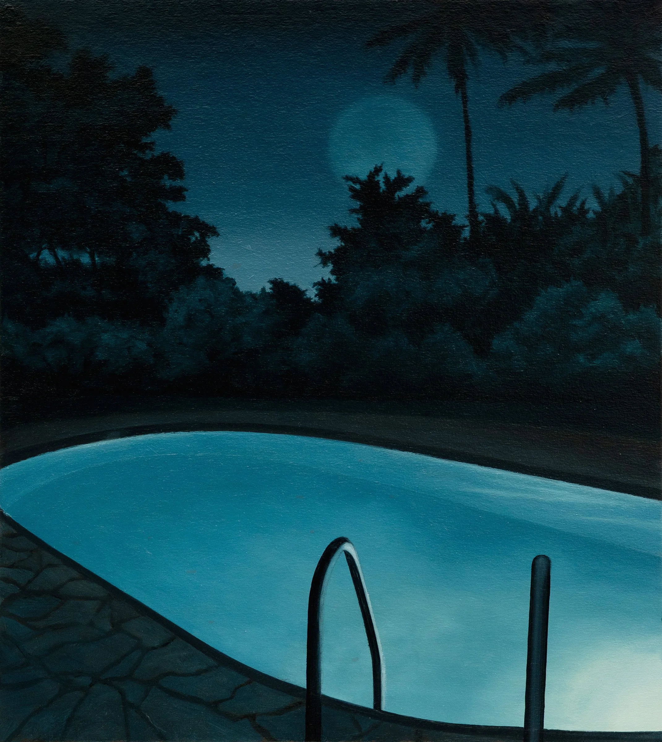 Expanding on this the work explores the tension between nostalgia and dislocation. Familiar settings of suburban South Africa—swimming pools, gardens, and domestic architecture have expanded to include open vistas with an increased focus on the interplay of figure and environment as sites of psychological inquiry. The human form as both subject and cipher, capturing moments of quiet unease, fleeting intimacy, and the subtle dissonance between past and present. I am concerned with the fluid nature of memory and belonging, the uncertain boundaries between interior and exterior, self and other. Drawing from South Africa’s complex socio-historical landscape, the visual language is informed by both personal experience and collective memory. While rooted in specificity, the paintings resist easy legibility, inviting viewers to navigate their own associations and emotional registers. They present intuited worlds, as normal as they are utterly strange and estranging.